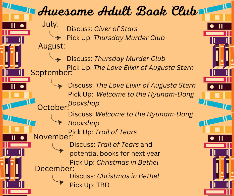 No need to sign up! Simply show up for the discussion and collect your book for the next meeting.
