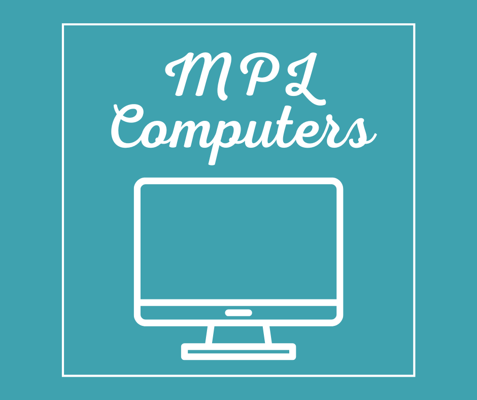 The library has 4 Dell laptops available for patron use, each equipped with the newest version of Windows 11, Microsoft Office, and webcams. A wired mouse and headphones are available upon request. These laptops do not have DVD/CD players.